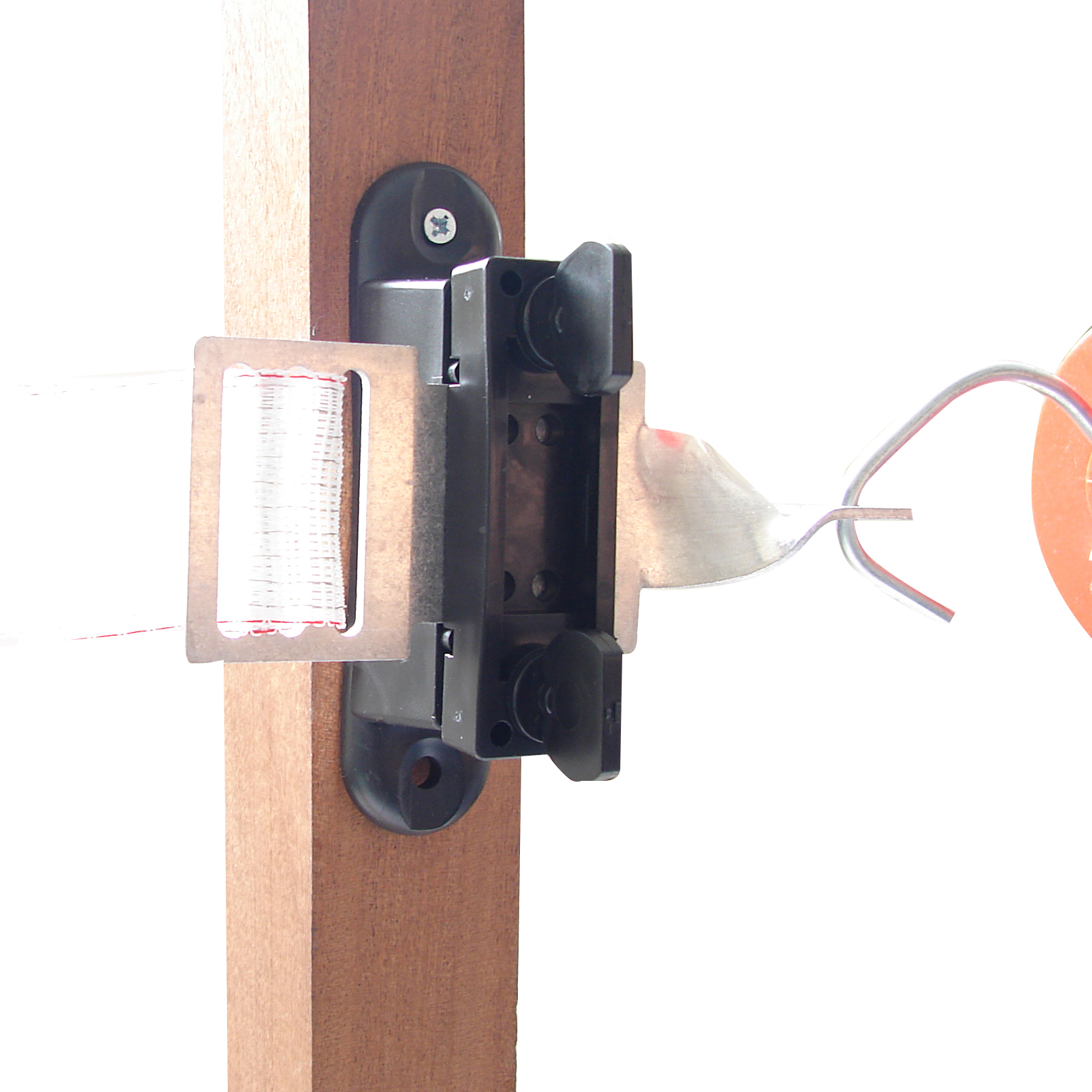 The spring-loaded gate handles hook securely onto anchor points, maintaining good tension and consistent electrical contact when the gate is closed. When opened, the handles safely isolate the live wires, allowing easy access with no risk of shorts or power loss elsewhere on the fence.